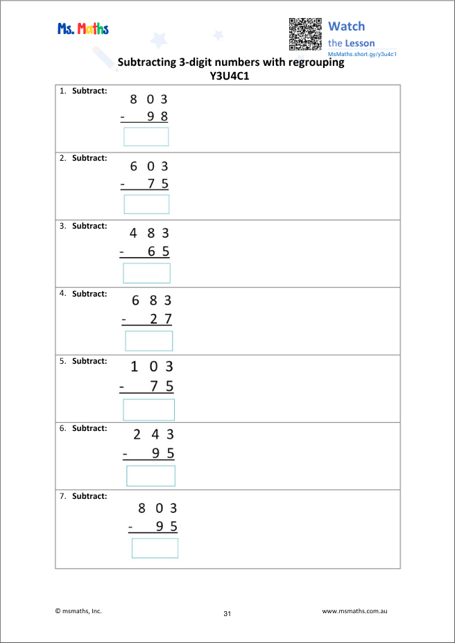 Y3U4C1 Subtracting 3-digit numbers (with regrouping)